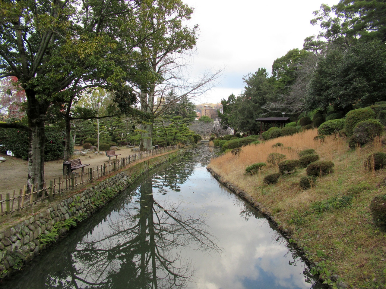 こちら「道後公園」は元々「湯築城」であったところです。源平合戦で功績を挙げ、鎌倉幕府の有力御家人として伊予の守護職となった河野氏が、南北朝時代に築いたのが「湯築城」です。現在は公園の南側部分が発掘・調査され「湯築城」として保存・公開されています。中世城郭で平山城というのも貴重だと思いますが、さらに堀や土塁が現存してるのも凄いと思います。発掘・調査で見つかった武家団居住区には2棟の武家屋敷や復元・公開されていますし、土塁展示室なんて面白いものもあります。中心施設の「湯築城資料館」は決して広くはありませんが、スタッフの方はとても親切ですし、展示品のなかには”猫の足跡のある皿”など貴重なものもあります。帰りには「みかんをどうぞお持ちください」と愛媛らしいサービスもありました。