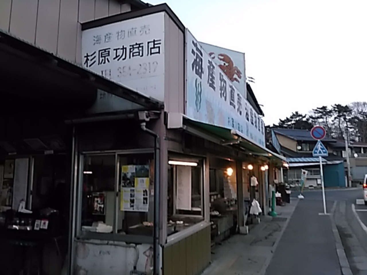 松島から奥松島に行く県道沿いにあります。海産物の販売の他に、焼いて食べさせてくれます。焼き物を頼んだ人はワカメの味噌汁が無料でいただけます。タコの焼き物600円はタレとマヨネーズとの相性がバッチリで箸が止まりません。店の前の道路は通行量が多いので、ちょっと行った所の駐車場に止めると安全です。