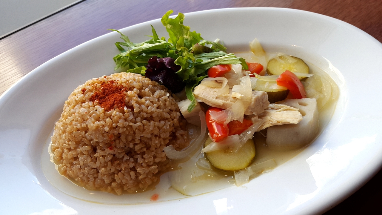 私が注文したのは期間限定のものでチキンと蓮根の白ワイン煮込み、本当に白ワインの風味が感じられ大人のランチというような味でもちろん他の野菜も煮込まれていて美味しかったです♪