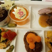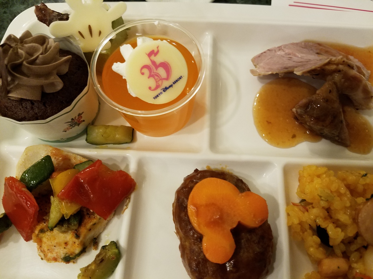 予約の時間にいくと、すぐに窓際の席に通していただき、五時半からのシンデレラ城のプロジェクションマッピングや花火を見ながら、食事かできました。