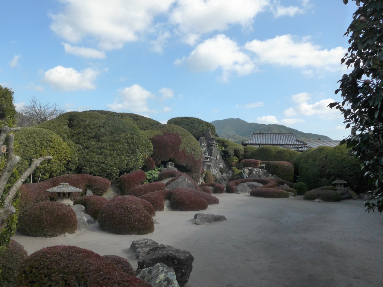 武家屋敷庭園群では西郷氏庭園と並び亀甲城址から離れた場所にあるが、その分、森氏庭園とはことなり借景に別の山の母ケ岳を使っている由。全庭園に共通することだが、生垣の刈り込みが曲線状で、その曲線が遠方の山とつながって、まわりが武家屋敷群であることが意識されないつくりなんでしょうか?