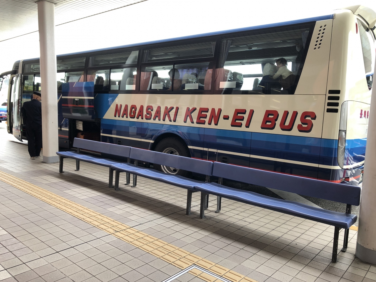 空港から長崎市内までぽっきり1,000円。ドライバーに聞くとお釣りは出ないということで目の前の自動販売機で購入(買い方がわかりづらいし遅い)で買っている間に出発してしまいました。こまめに運航している時間帯もありますが20分待ちとなってしまいました。空港が絶妙に広くもなく狭くもなく売店をめぐって時間つぶしができました。