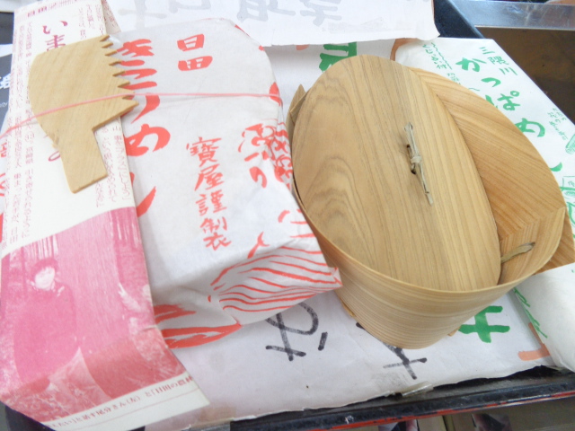 杉でできた弁当箱に、杉ののこぎり、子供が喜びそうです。