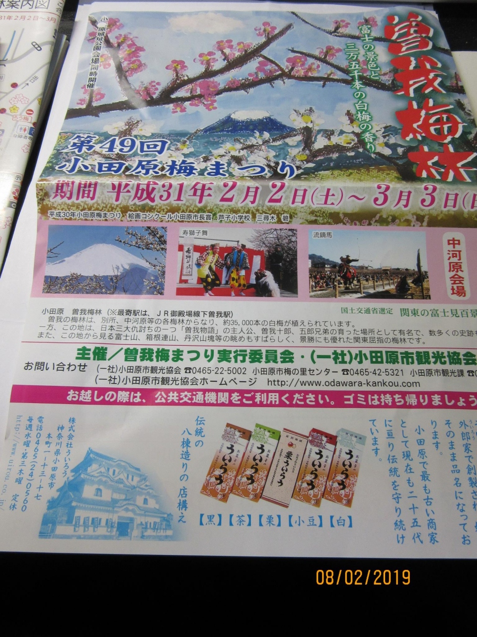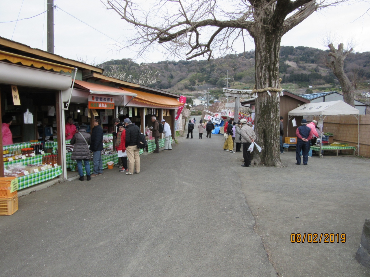 梅まつり期間中は土日に【ちょうちん祭り】や【寿獅子舞】等の催し物があり、出店も出ており、バスの臨時便が多数国府津駅から運行しており今が絶好のまつり見物の時です。