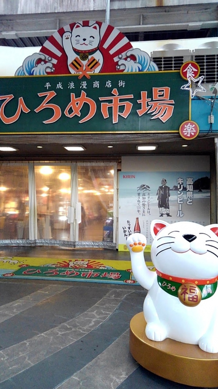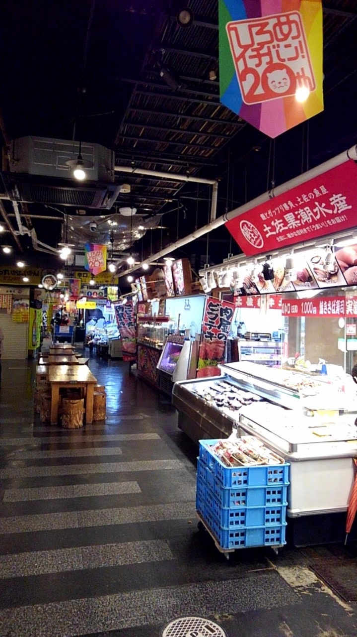 夜と昼、2回行きました。夜と言っても7時半くらいで商店街にあまり人がいませんでした。ですが商店街を抜けたところにあるひろめ市場は座るところもないぐらい賑わっていました。私は水曜日の夜に行きましたがこれが週末だったらもっと混むのかなあ?と思いました。ひろめ市場には約60店舗があるそうです。私はお酒が飲めないので『鰹飯』と厚焼き卵などのおかずを買って帰りホテルで食べました。『ひろめ市場』もクレジットカードは使えないようでした。価格は250円くらいからあり1000円ぐらい買うとでお腹いっぱいになりました。昼はかえって人がいなくて活気はありませんでした。