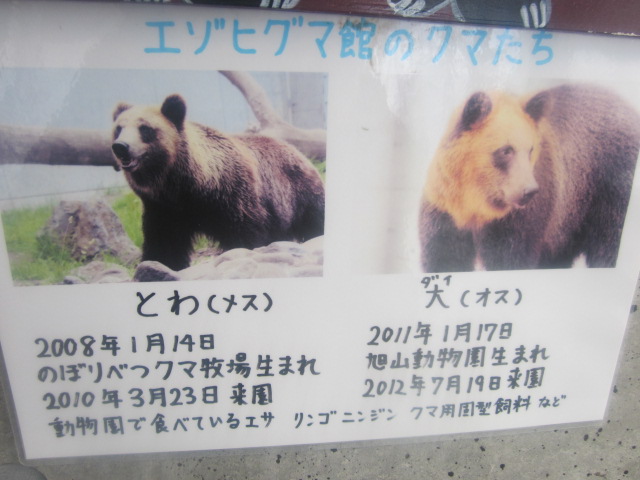 北海道を代表する野生動物のエゾヒグマは、やはり円山でも旭山でも看板動物の一つだと思いますが、実は、あの旭山動物園の「とんこ」の子供の「大」君は今円山で生活しています。両動物園のファンの方は、併せてこの二頭をご覧になる方が多いですが、本当に最近の大君はとんこに似てきている、といお話だったので、その様子を3日前のとんこの様子を思い出しながら観てみたかったのですが、この日は丁度イベントのタイミングにぶつかってしまい(もう少し早く気づいていたら観られたんですが…)、大君の姿を確認することが出来ませんでした。