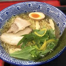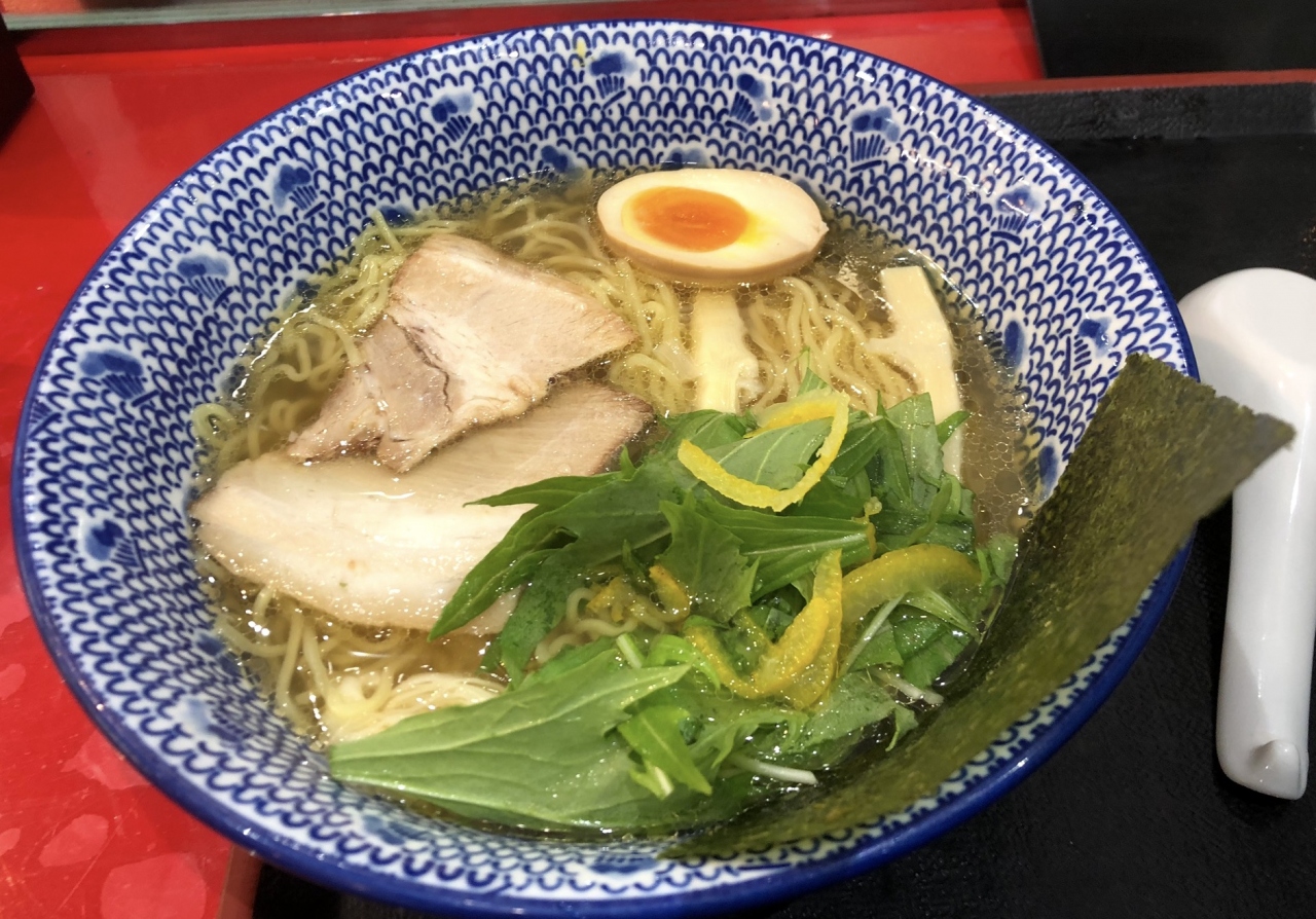 チンタン柚子塩ラーメン味玉入りを選びました。自販機で食券を買って、カウンターに持っていくスタイルです。食べ終わったら、自分でかたずけるセルフサービスのお店です。