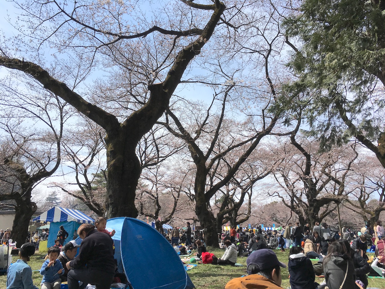 駅前のスーパーで惣菜パンを買ってから、桜まつりの最中の公園まで行きました。