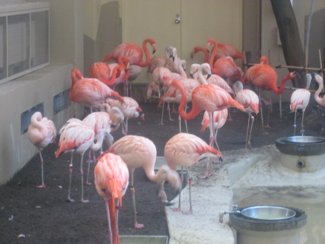 この館を今回冬に訪れてみて、一番夏と違うなと感じたのは、やはりフラミンゴの存在でしょうか。勿論、寒さには弱い鳥さんなので、夏場は屋外で観られる一方で、冬場はこの館内の狭い一角でちょっと窮屈そうにも見えてしまいますが、円山のフラミンゴさんはこの環境のおかげで、ビデオカメラシステムを使って、間近の様子を確認したり出来るのが秀逸だと思います。