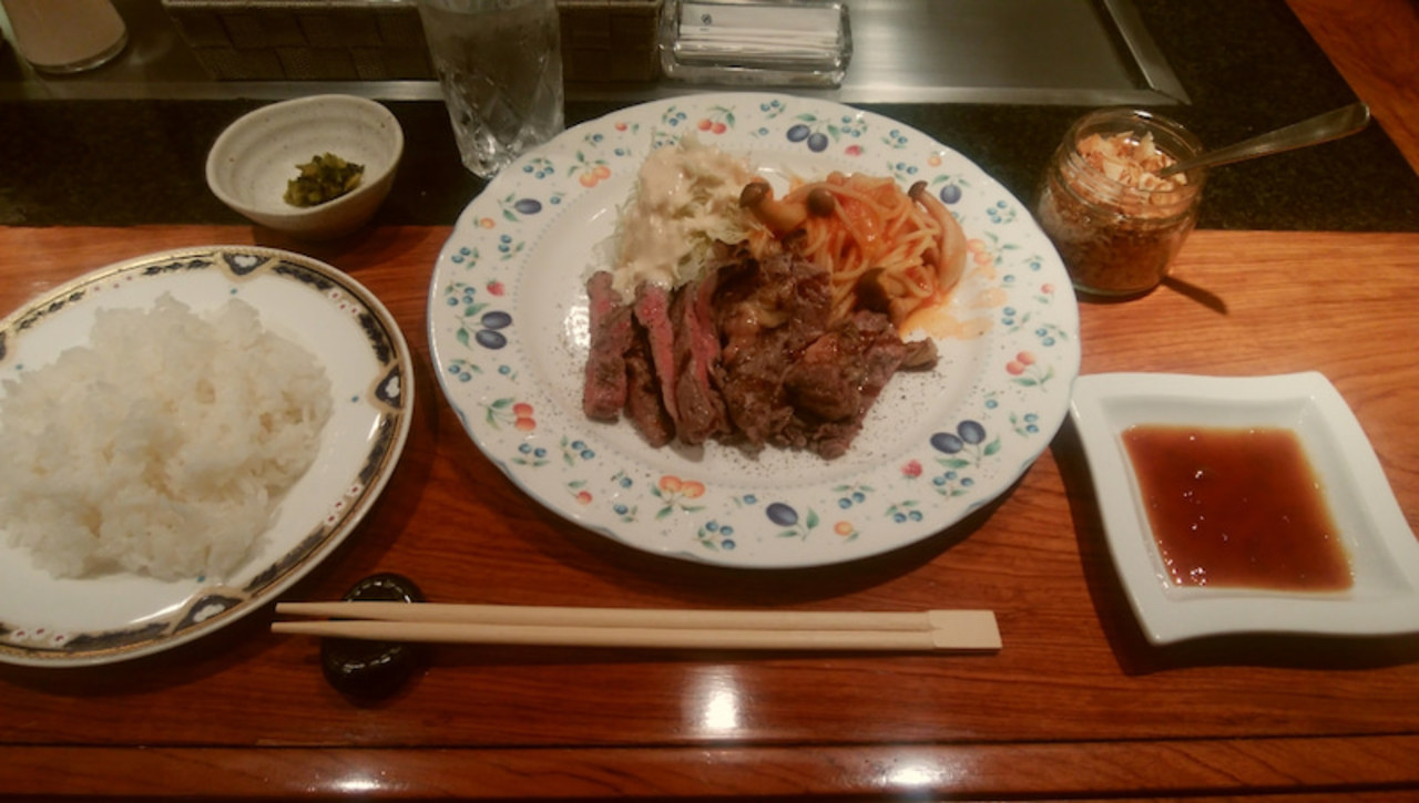 ワンプレートなので肉汁とニンニクチップを絡めてパスタを最後に食べました。