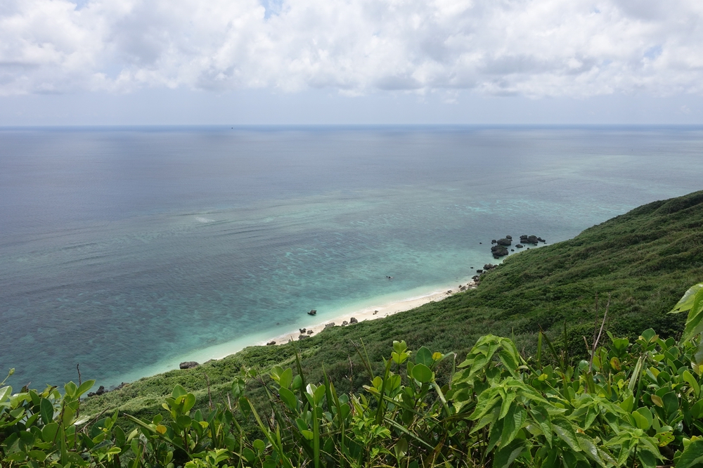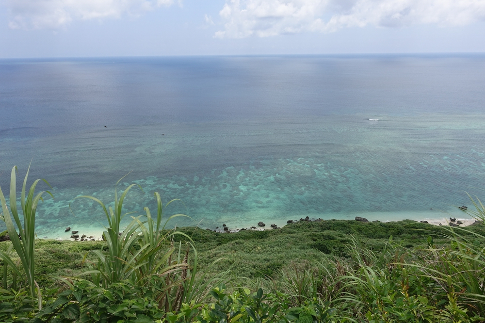 今回も新城海岸に行く前に寄り道。誰もいませんでした。ここですることと言ったら、断崖上の展望台から海の景色を眺めること。左から右までとにかく視界がワイド!透明度が高いので珊瑚礁がきれいに見えます。多少潮が引いてる時のほうが珊瑚が浮き出てきれいに見える気がします。