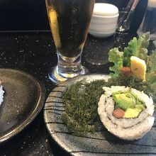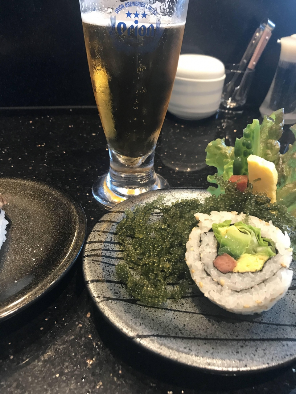 琉球回転寿司というだけに、沖縄ならではの食材を使った珍しいお寿司もたくさんあります。石垣牛や海ぶどう等々・・・