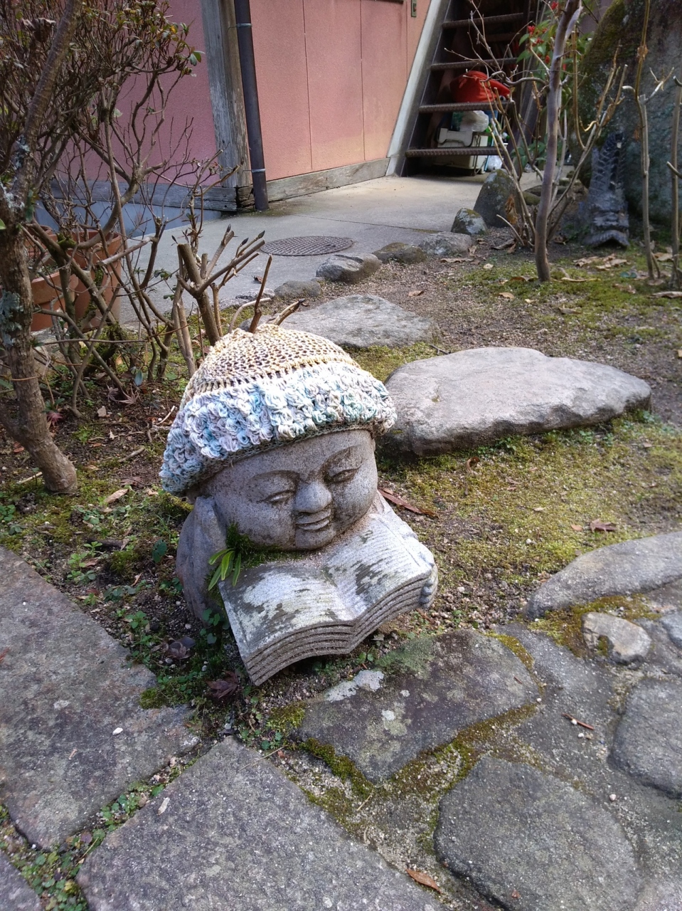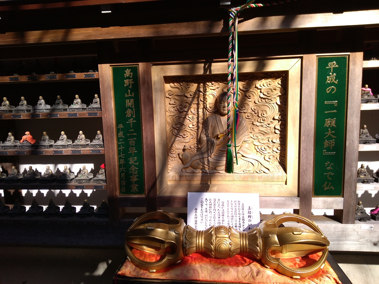 急な階段にはマニ車があって廻すことができるし、鐘楼では鐘を突くことができます。可愛らしい子供姿のお地蔵様が並んでいたり、真言宗のお寺らしく、「戒壇めぐり」もできるようです。大師堂の裏にまわると、一願大師や撫で仏もありました。遍照窟では四国八十八か所巡りができるそうです。