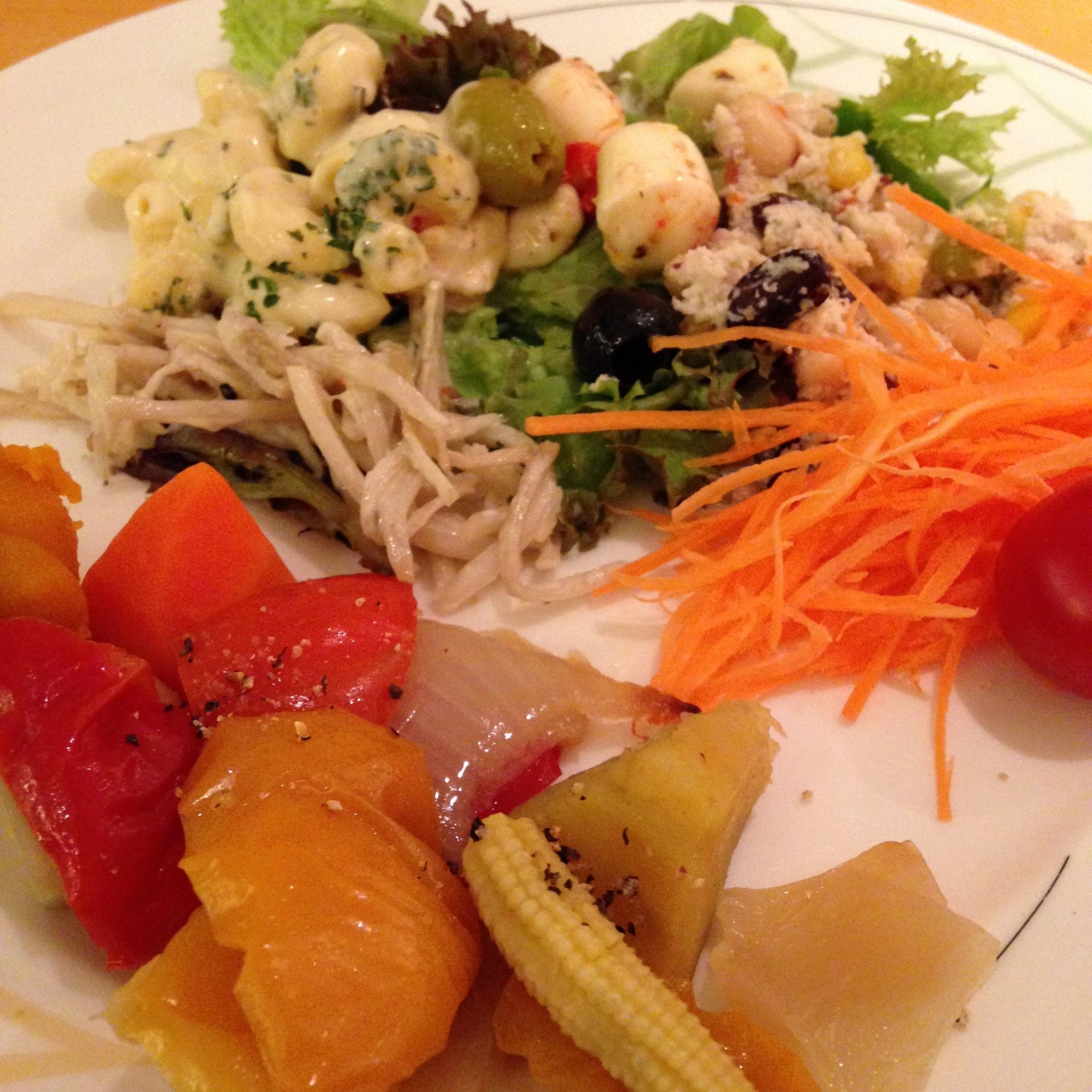 ドレッシングも豊富で、温野菜はハーブ塩などでいただきました。