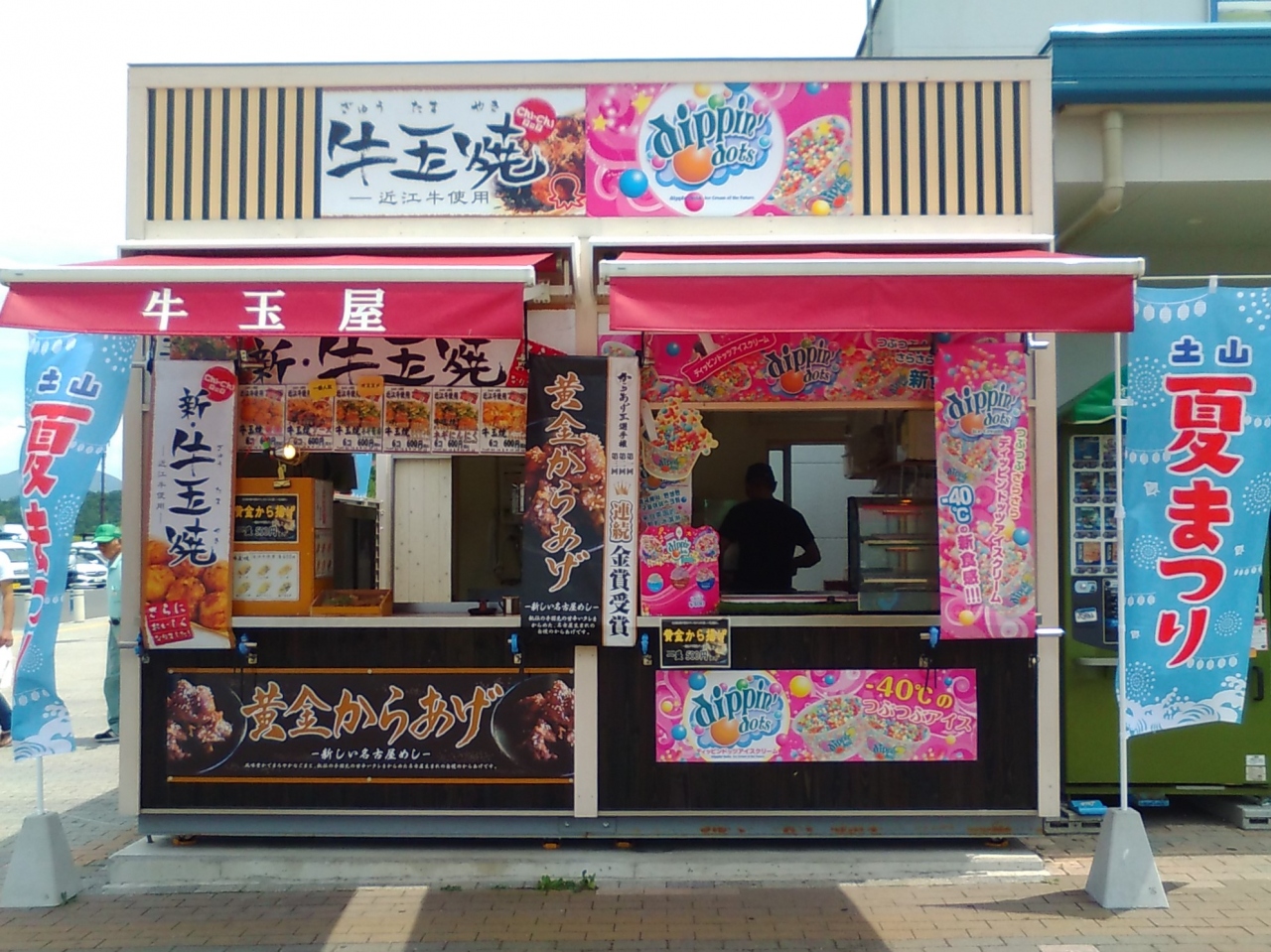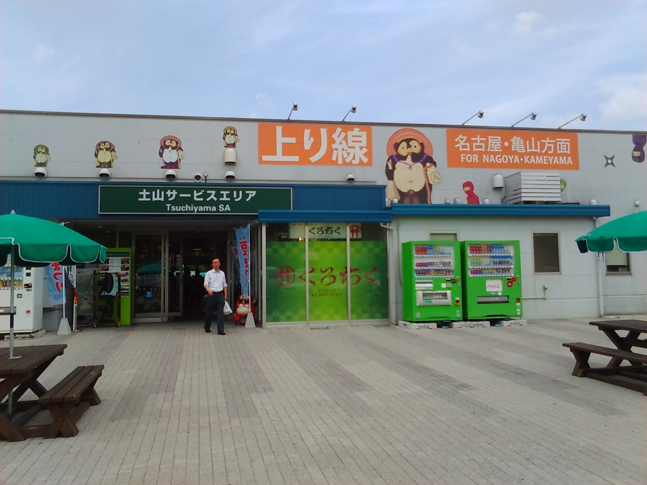 新名神高速道路にあるサービスエリアです。駐車場が広く、陶器で有名な信楽と近いせいか、建物入口ではタヌキさんがお出迎え。施設の中には飲食店・フードコート・土産物店・コンビニ(セブイレ)などがあり、外のにぎわい広場にもスナック類中心に店舗が並んでいます。