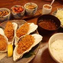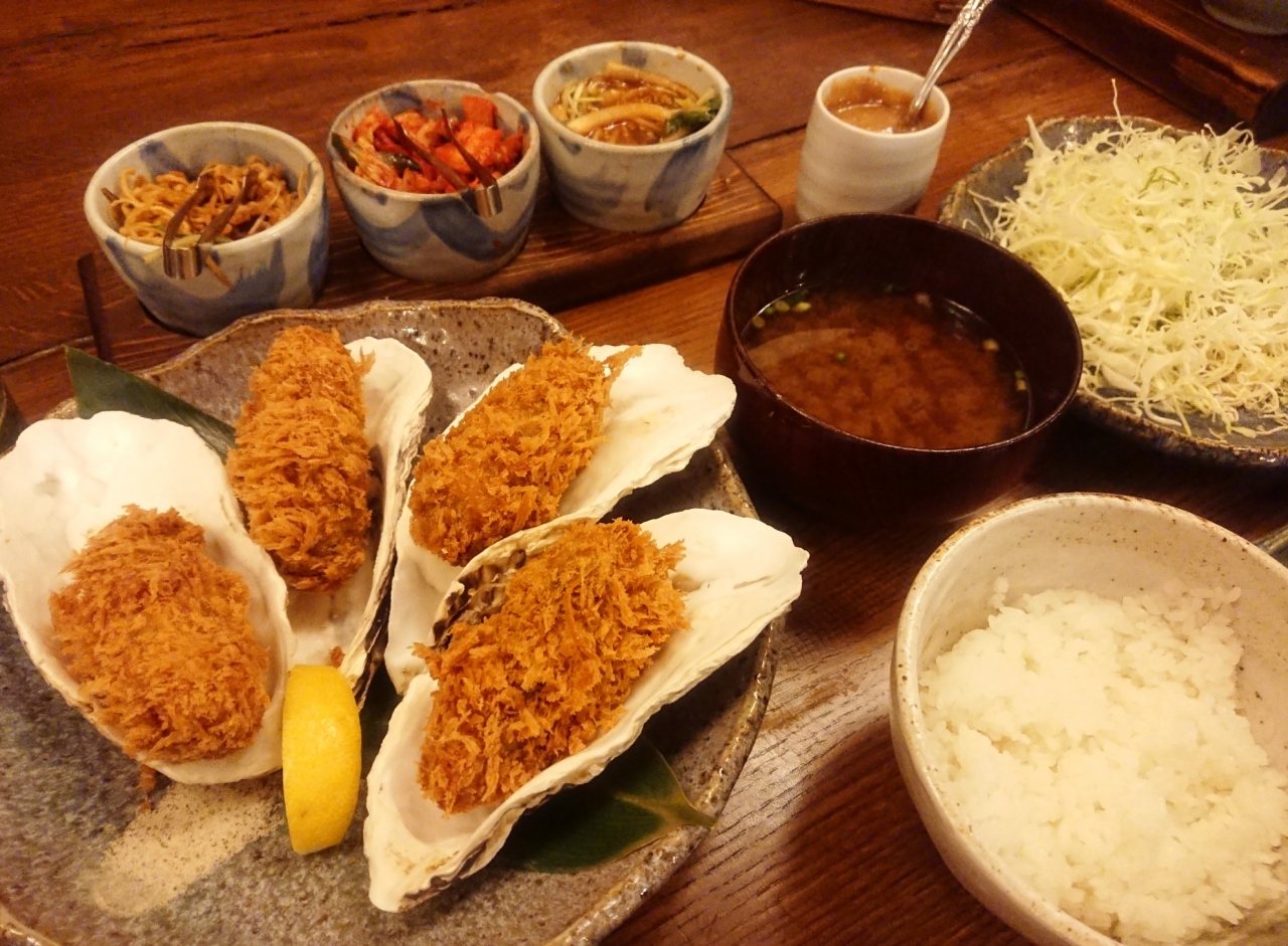 牡蠣殻の上に乗って出てきます。通常のソースに加えてタルタルソースも付いてきます。