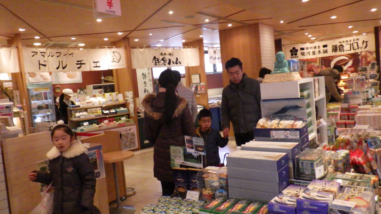 江ノ電鎌倉駅駅ナカショッピング街ことのいちは2013年リニューアルオープン人気、老舗の売店と土産品、江ノ電グッズ、コンビニエンスストアがあります。
