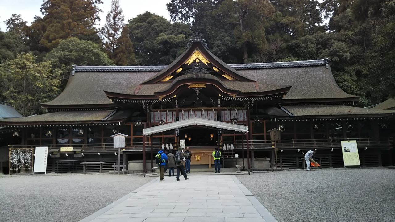 駐車場は混雑していました。寒かったですが、参拝客で賑わっていました。出店も出ていました。参道を進むと途中の摂社に人だかりができていました。拝殿でお詣りし、一宮の御朱印を社務所でいただきました。大和七福神の三輪明神もお願いしました。