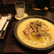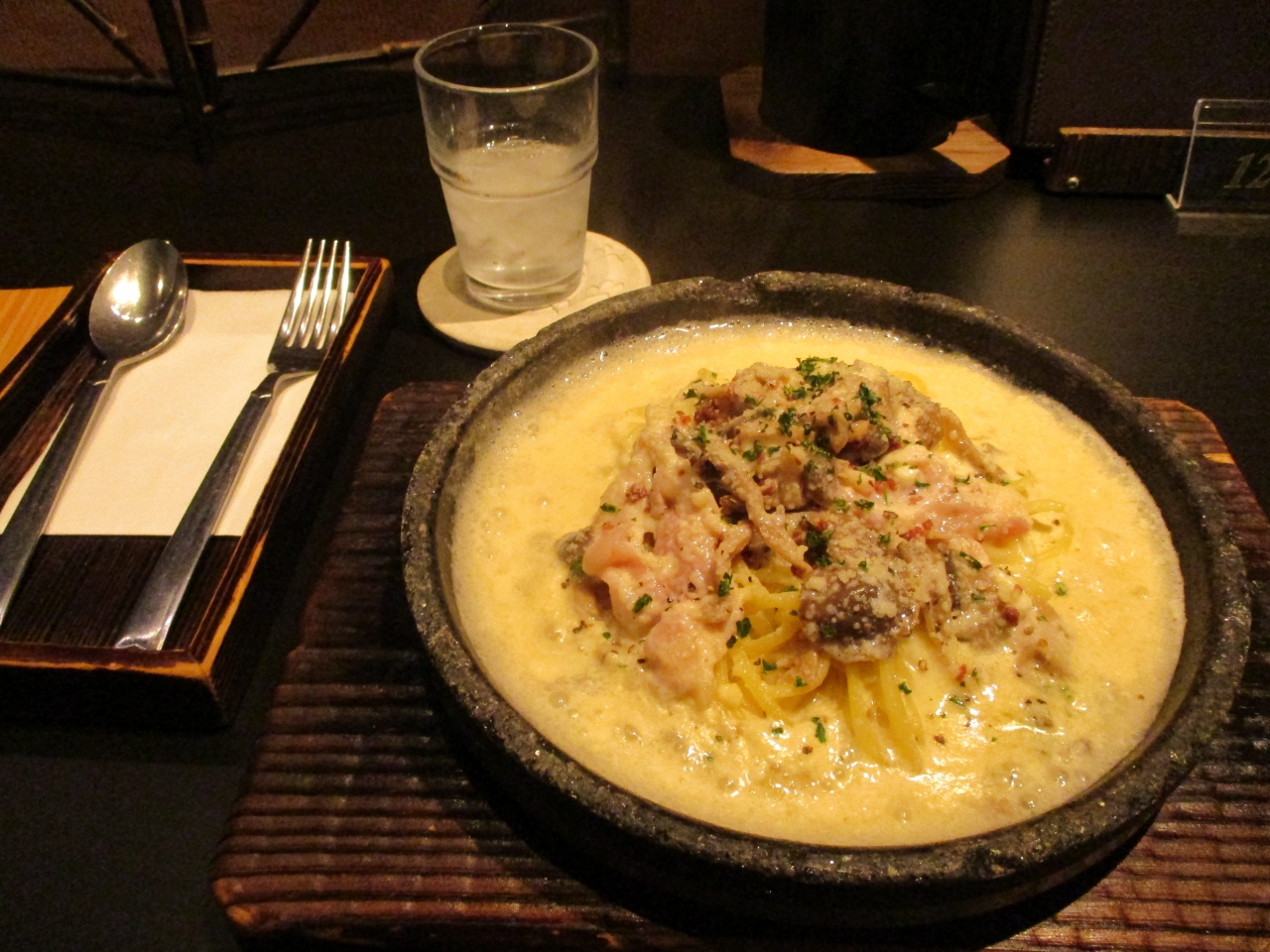 石焼の器で入って運ばれてくるのですが、最後までアツアツの状態で食べられるのも嬉しいし、生パスタなので麺がのびないのも良いです。 生パスタの麺は淡路麺業のものを使っているようです。 淡路島に行った時に、淡路麺業のパスタ専門店で食事をした時はそこまで感動しなかったので、ソースの味って大事なんだと実感しました。