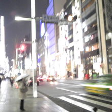 銀座の目抜き通り、ニューヨークの5番街ともよく比較されるショッピングストリートですが、雨も降っていて、人は少なかったです。