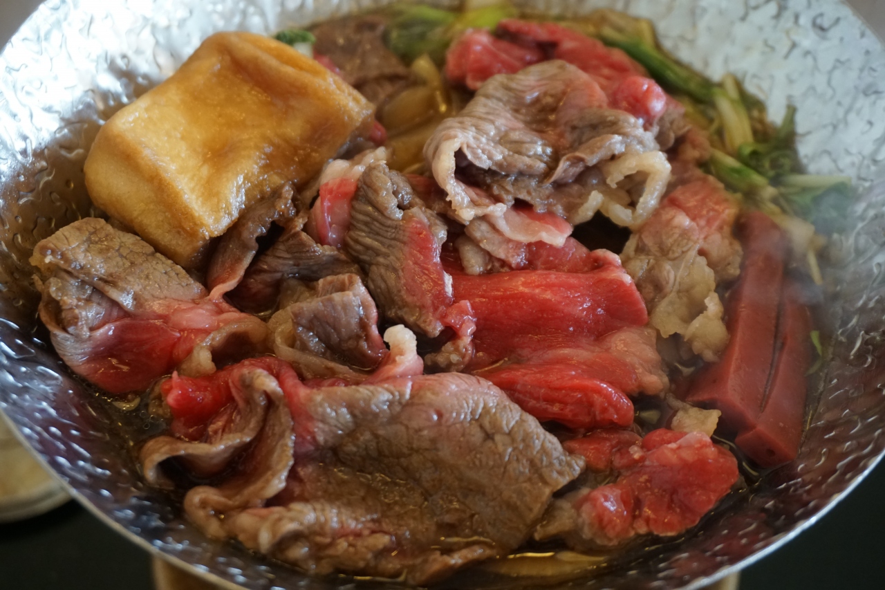 レストラン岡崎は、近江牛の中でも最高峰の日野牛をウリにしているお店。ランチに赤身のすきやき膳をいただきました。鮮やかな赤身の色は出てきた瞬間から感動もの。短い時間ですぐに火が通って、そのまま熱々を卵に付けて。うーん。うまい。やっぱり、これがA級グルメ。心から満足感が広がりました。