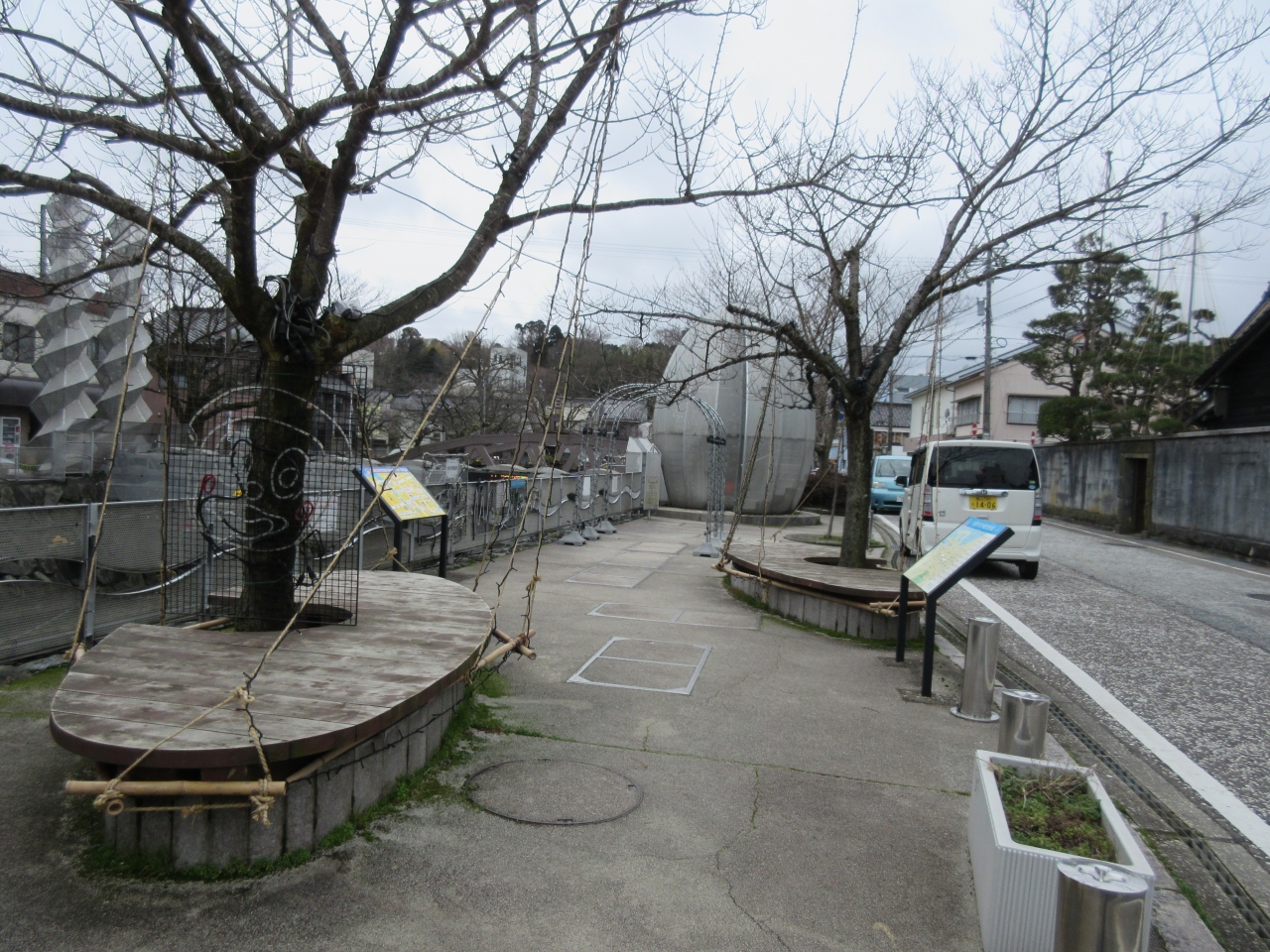 湊川沿いにある整備された遊歩道。桜の木があったので、咲く頃はきれいな通りになると思われます。途中には忍者ハットリくんのキャラクターが登場するからくり時計があり楽しめると思いますが、歩いているのは観光客ばかりでした。