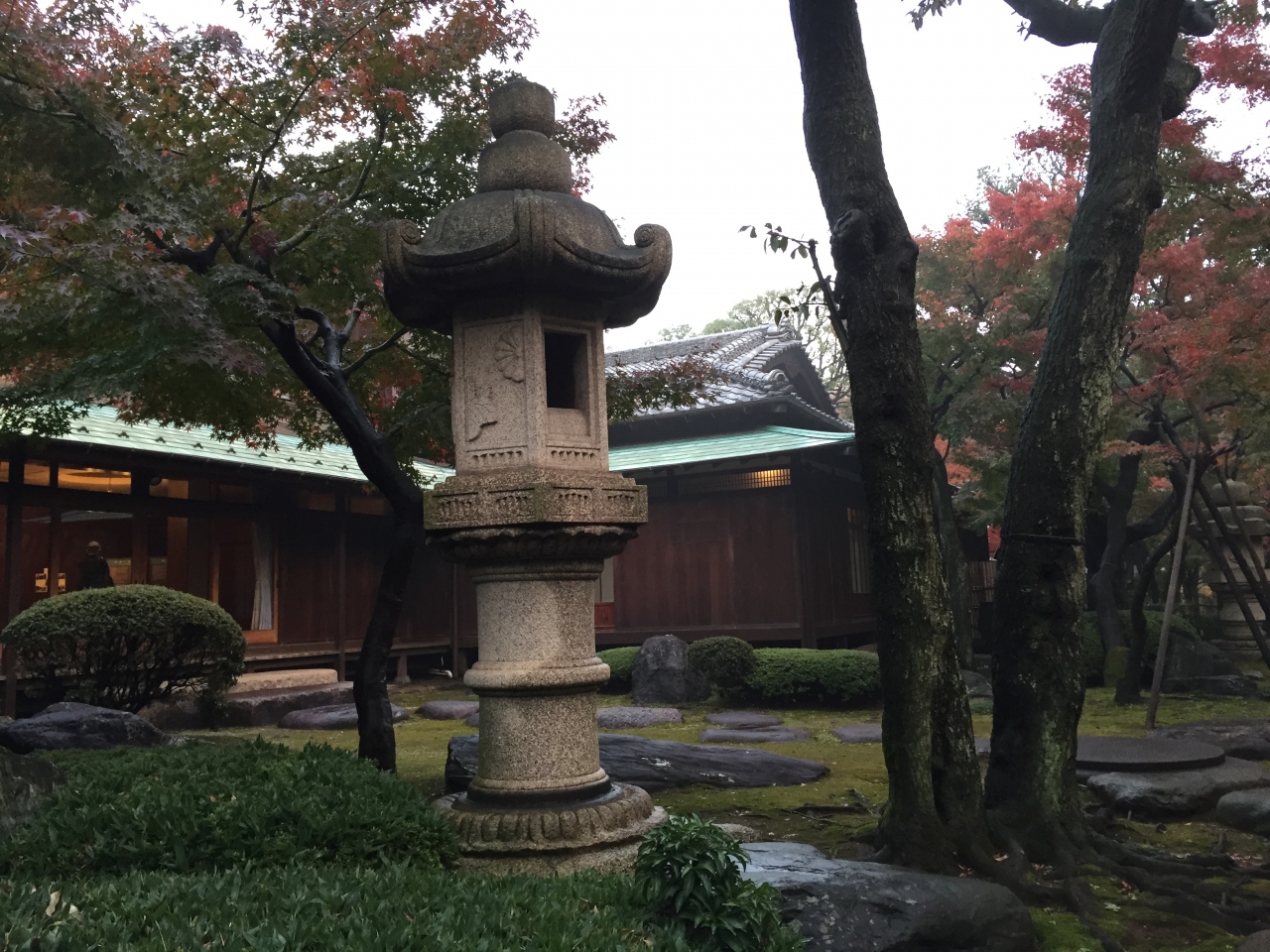 近くを通ったので、再度訪問しました。入場料が安いのが嬉しいです。11月末の訪問で、紅葉が少しだけ始まっていました。木々の先端が赤らんでいる程度したが、庭園は風情がありました。前回も思ったけど、中庭の部分が湿っているのは水を撒いているんでしょうか?曇りだったというのもあって、ややどんよりした雰囲気。