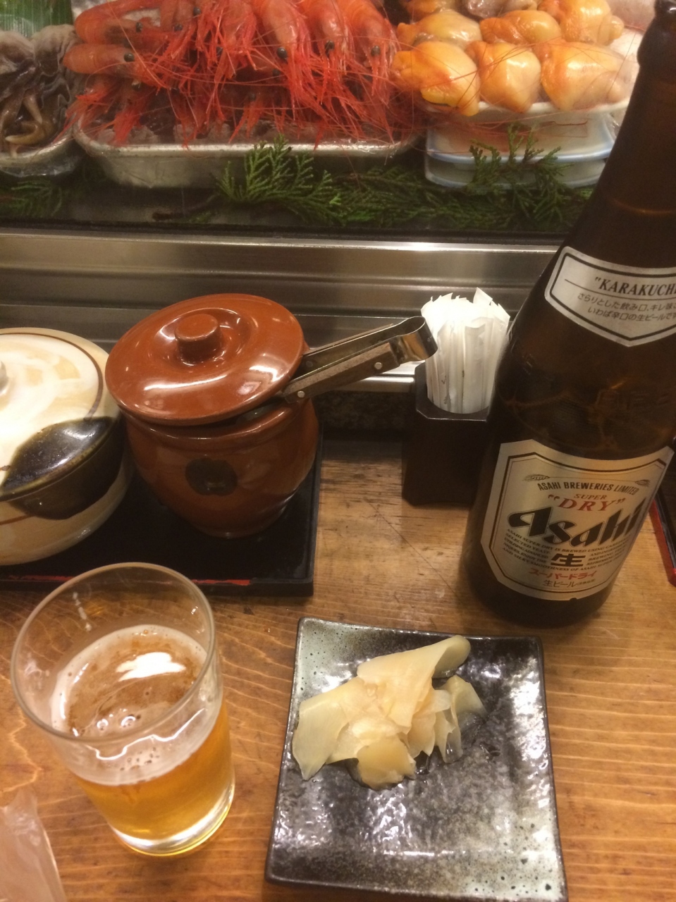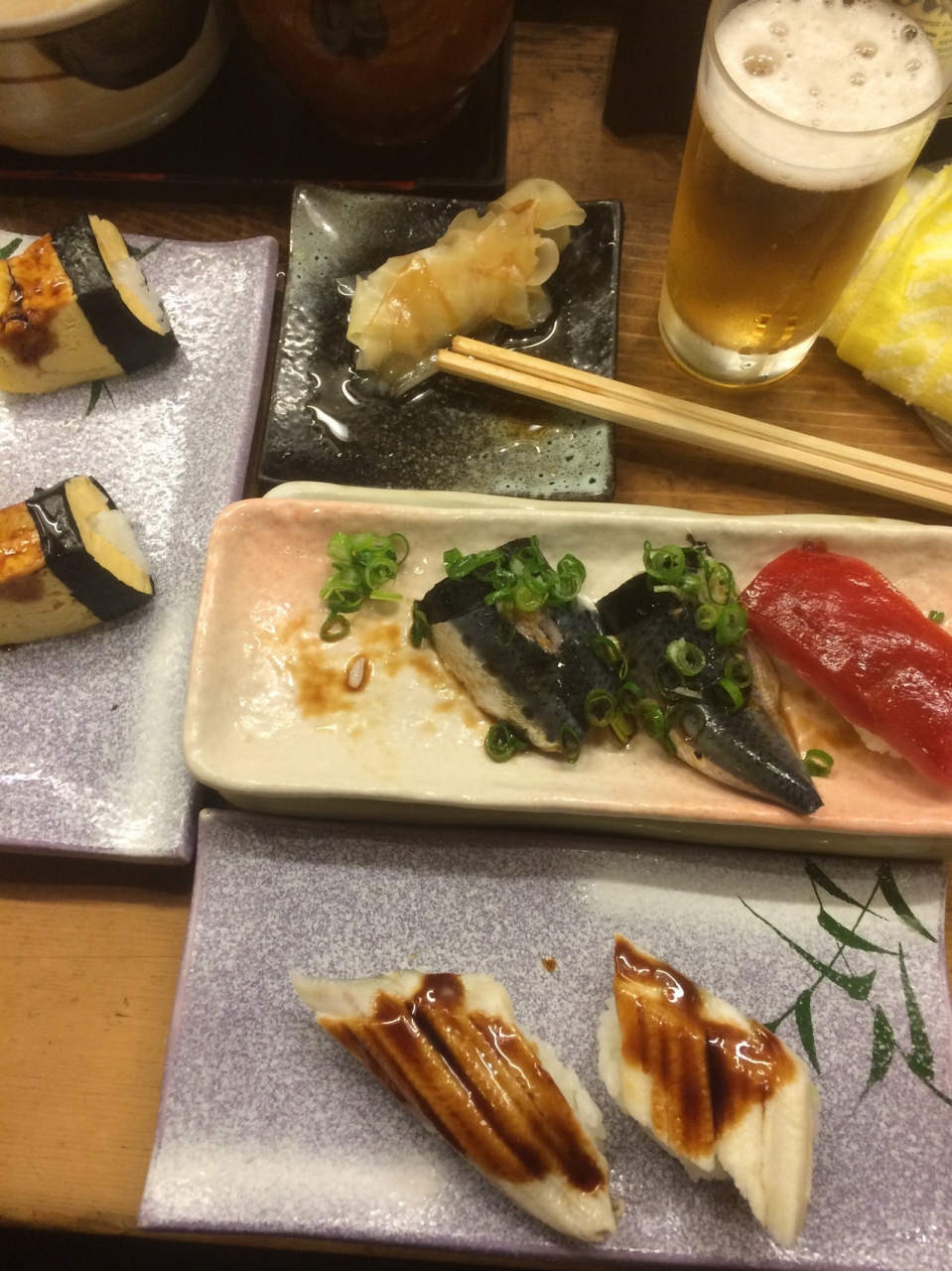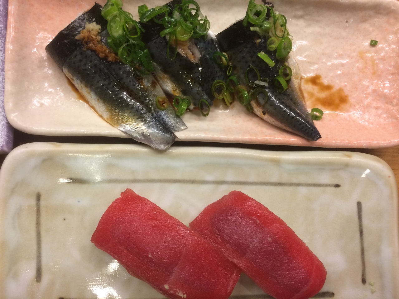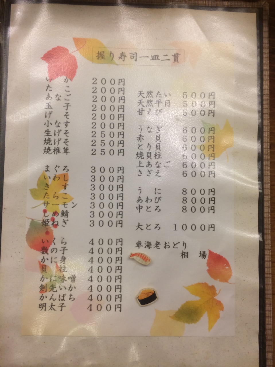 行列店ですが、並ばずに入店出来、カウンター席に座れました。カウンター前には切り込んだ魚が置いてあり、旬のメニューが貼ってありました。寿司は単品ごとに注文し、イワシ、たまご、アナゴが美味かったです。醤油はヘラの先制ようなもので寿司に塗る醤油でした。