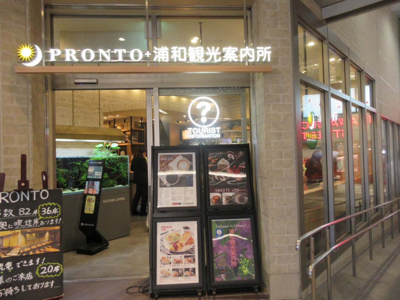 浦和駅中央改札口を出た正面にあるカフェ・プロントの奥にあり、入口はプロントと同じドアを使用しています。小さな案内所ですが、中には埼玉県の観光パンフレットや浦和の名産品、キャラクターグッズなどが置かれ、一部販売もしていました。担当の人に、浦和周辺の観光マップがないか尋ねたところ、快く無料の地図を手渡してくれました。(有料の地図もあります)カフェと同じ入口のため入りにくく感じましたが、店の人から声をかけられることもありませんでした。