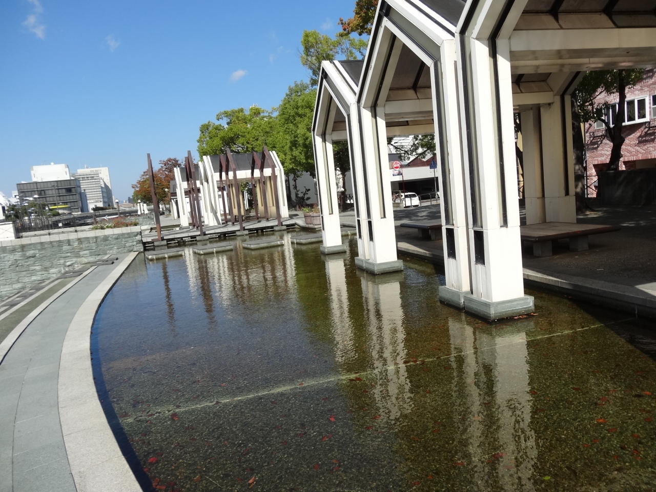 新町川沿いに整備された公園で、駅前の道路まっすぐ行った先で分かりやすく駅からも近いです。オブジェなども設置されていて散歩などするにはいいですし、ボードウォークといったスポットもあります。川沿いなので気持ちのいい公園です。