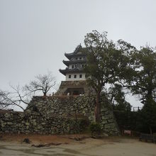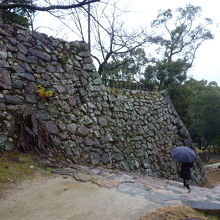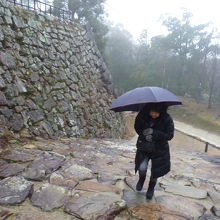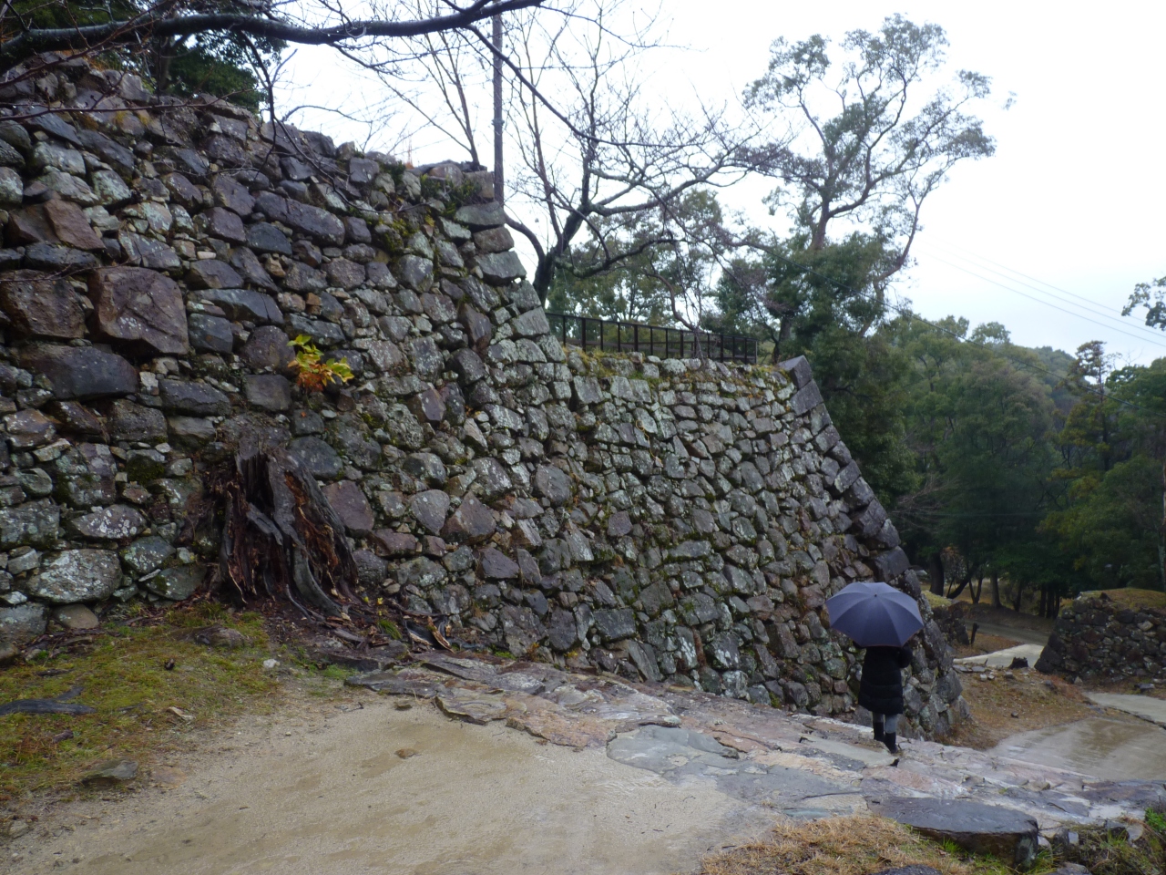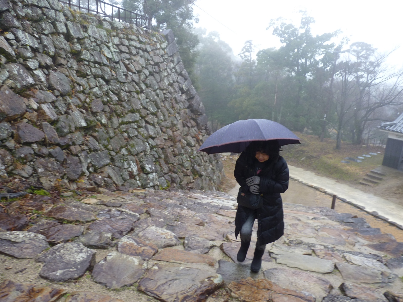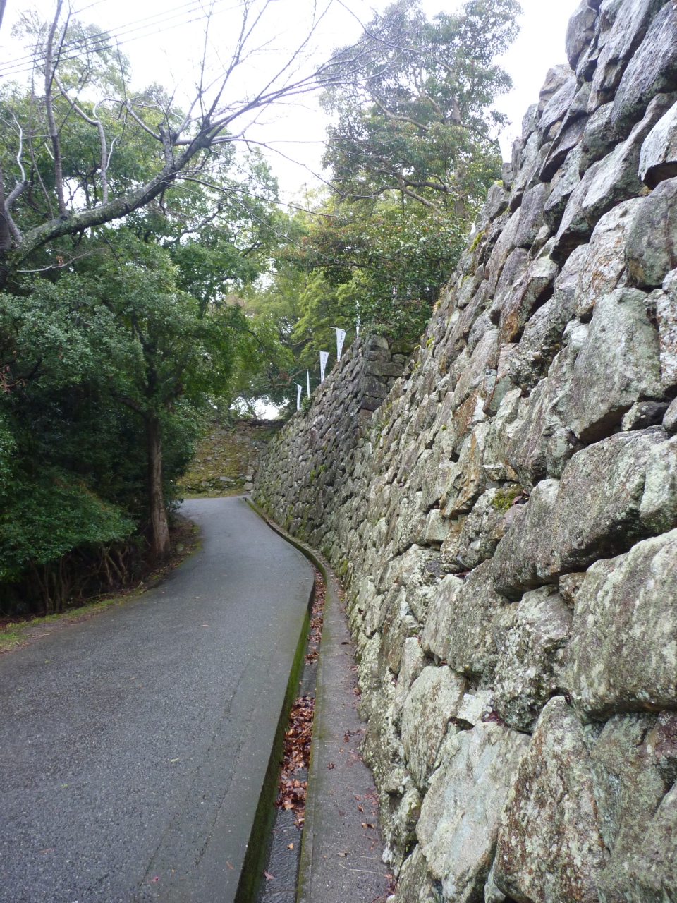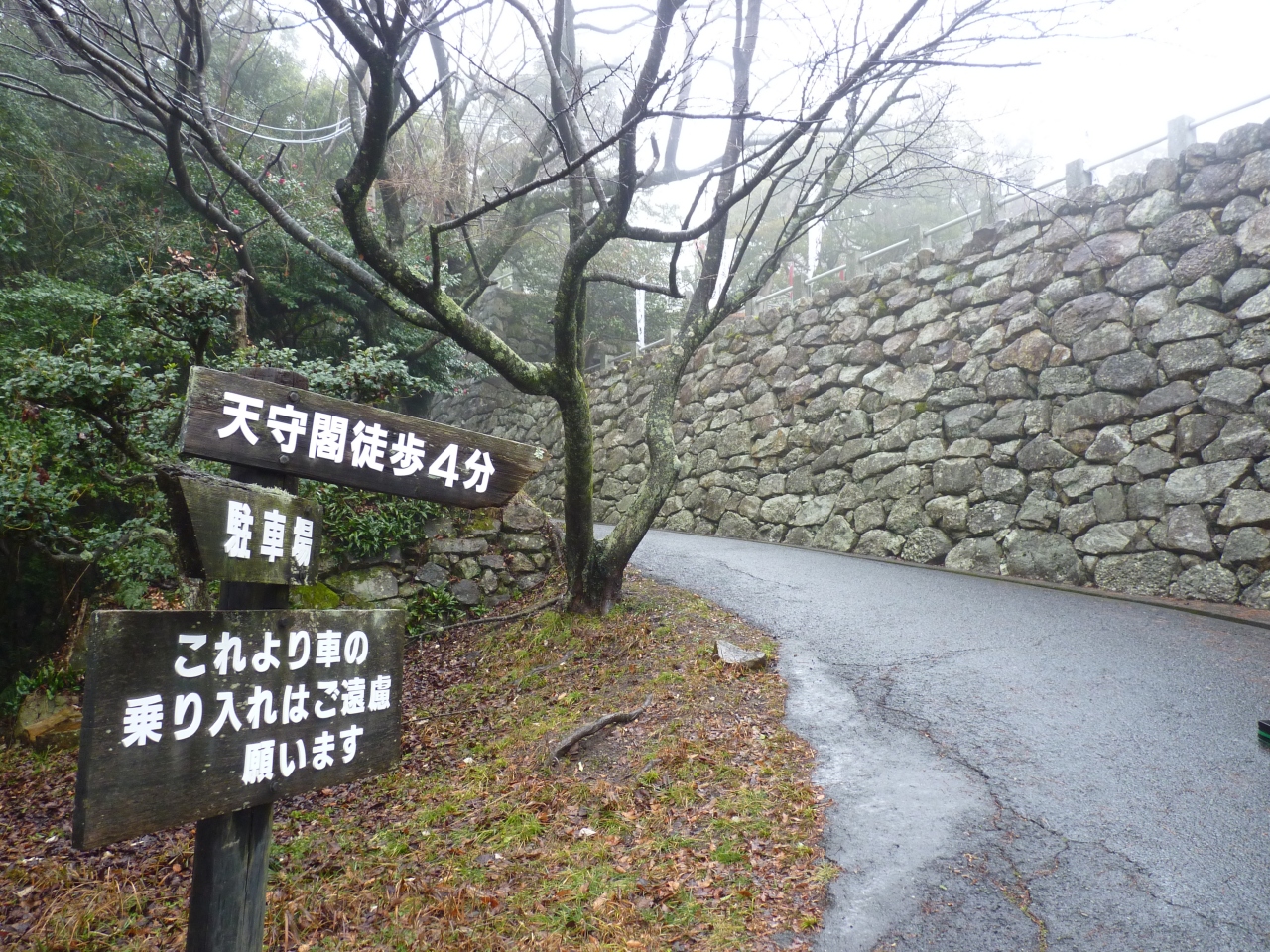 洲本市内を抜け三熊山頂上にある洲本城を訪問する。予定は麓から歩いて登るつもりだったが、あいにく雨降りで今回は頂上までドライブすることに切り替える。車であると15分くらいで駐車場に到着する。標高133mの山上に仮想天守閣が建つが、周りの石垣は全て当時のままで往時の様子を忍ばせてくれる。山頂からの展望はすばらしく、晴れた日に再度訪れてみたい。