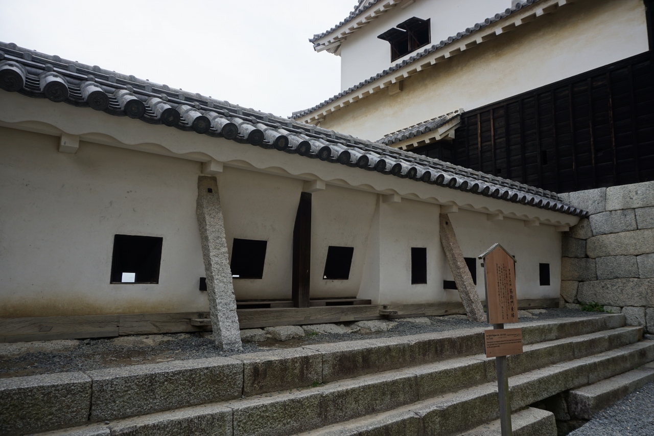 松山城の筋鉄門東塀は、三ノ門と筋鉄門の間。筋鉄門に向かって行く狭い通路の左側。一ノ門南櫓、一ノ門、小天守を防御する役目のようですが、単なる塀のようなもの。高さもあまりないし、イマイチその機能的なところがよく分かりませんでした。