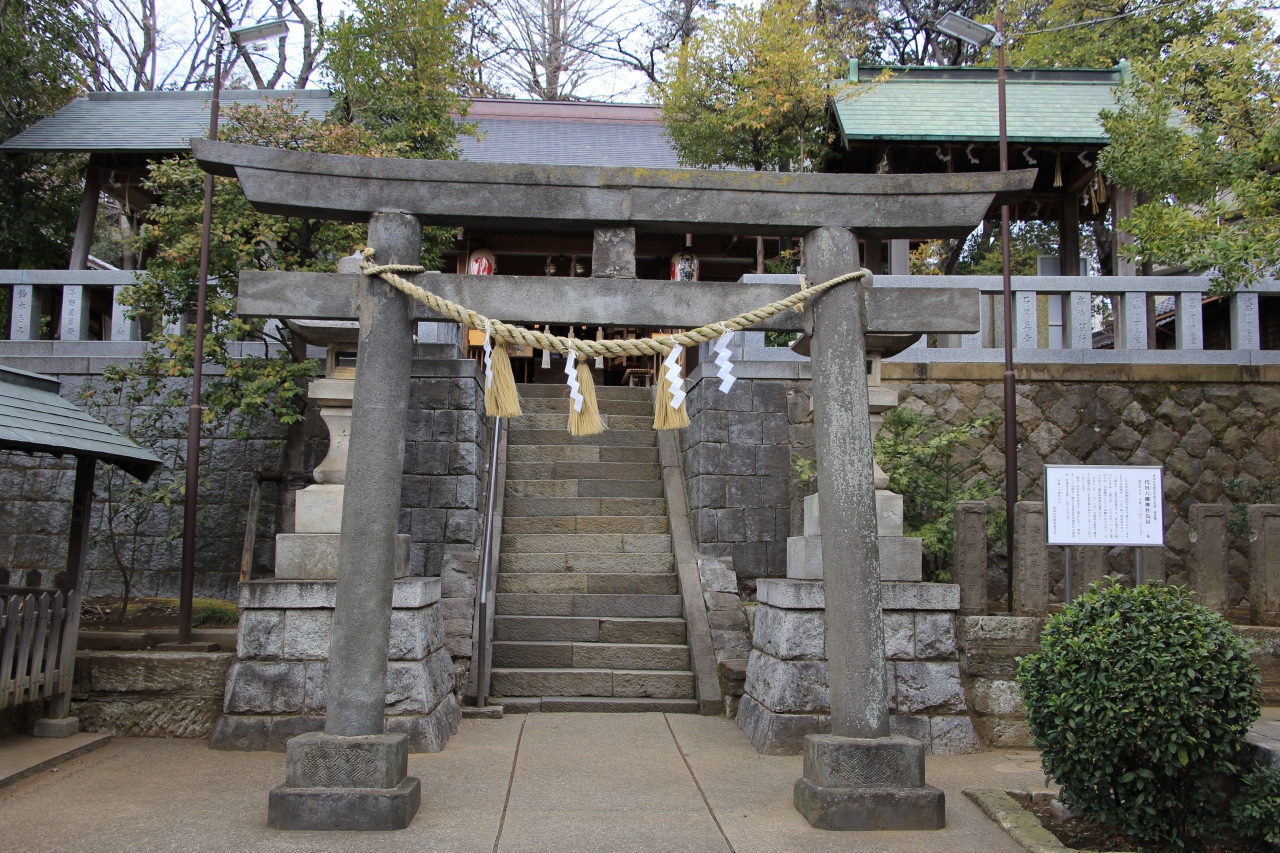 社殿正面の石段下にある鳥居は世田谷区内で二番目に古いものです。