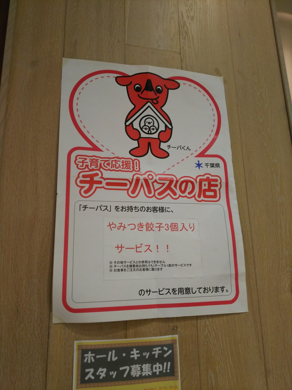 チーパスを提示すると、やみつき餃子3個サービスがあります。