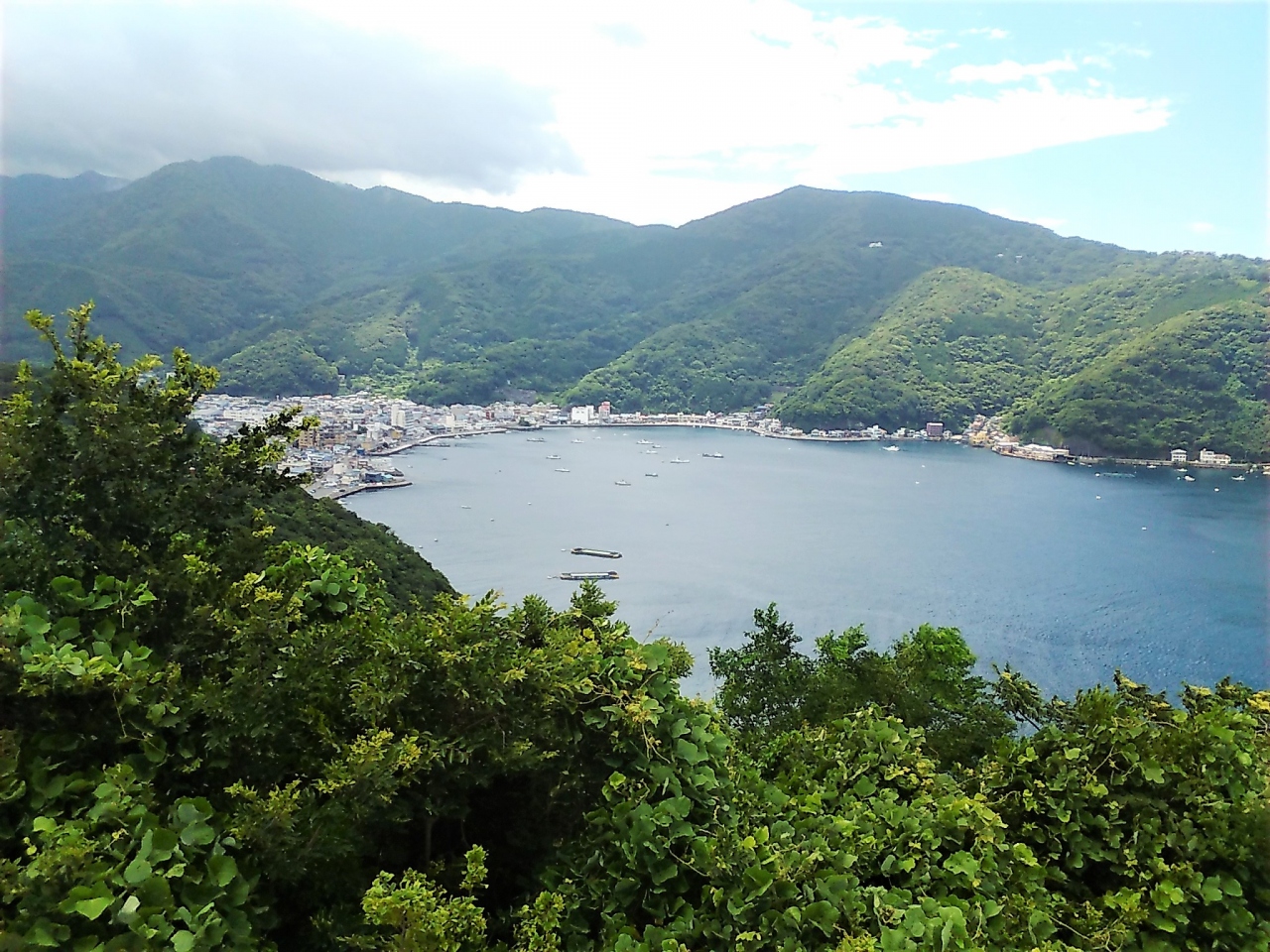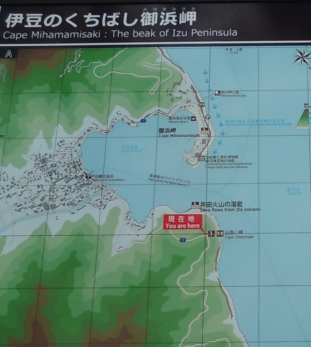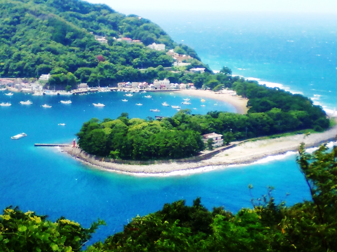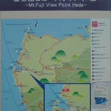 戸田港を駿河湾から隔てるように突き出した岬です。少し弓状に湾曲し美しい浜を形成しています。港側は砂浜になっていて海水浴で賑わうところです。写真は岬のちょうど正面、県道17号線沿いにある『ビュースポット戸田』から撮影したもの。