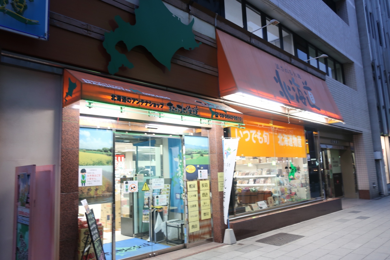 浅草浅草寺の雷門の正面を150m程行った右手にある北海道のアンテナショップです。店内では乳製品、魚介類、野菜、ラーメン、菓子など北海道の特産品を北海道まで行かなくても買うことができます。ちょうど食べたかったマルセイバターサンドも売っていました(期間限定)。