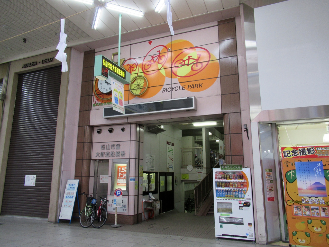 「大街道」という名前の通り、アーケードの屋根の高さ、広い道幅が印象的な商店街です。自転車走行は禁止されています(走行する人もいますが…)ので、比較的安心して歩けるのは良いことです。商店そのものに全国チェーンのお店は多くなく、愛媛らしい柑橘屋さん、松山の労研饅頭のお店など、ローカル色が楽しめました。