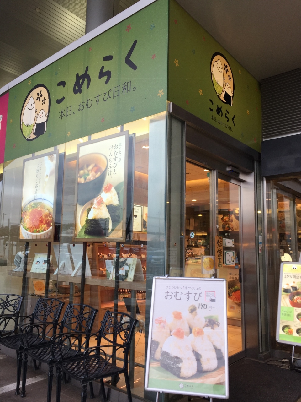 サービスエリアのフードコートやレストランフロアに出店している「こめらく」は、主におにぎりや汁物を取り扱っていることが多いです。海老名SA下り線のこの店舗は建物の外に有り、テイクアウト専門のようです。おにぎり2個を購入。コンビニの冷え切ったおにぎりと違い、寒い日には、まだ温かさが残っているおにぎりがうれしいですね。
