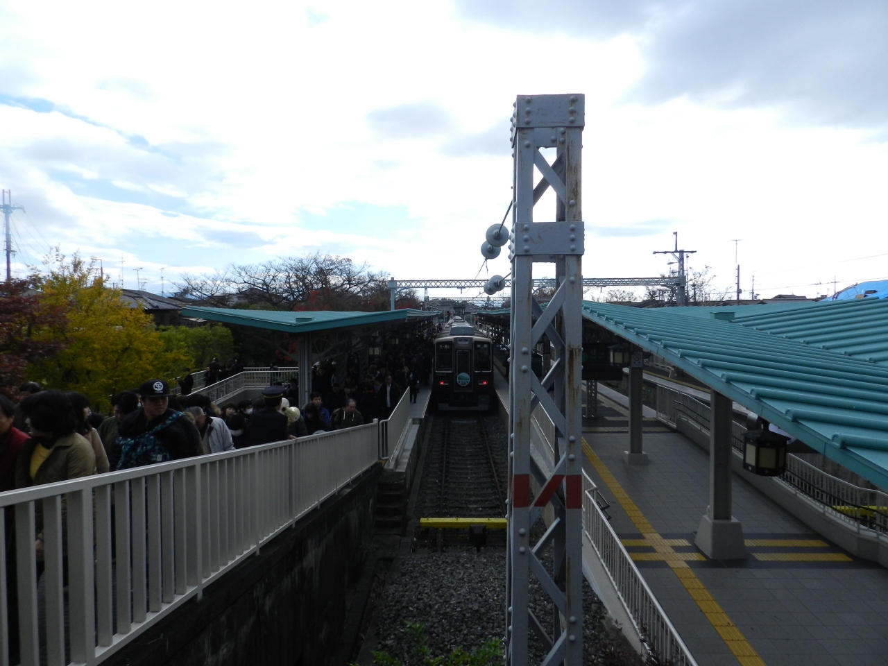 阪急京都線の桂駅から嵐山駅までを結ぶ4.1kmの阪急電鉄の鉄道路線。嵐山観光には欠かせない便利な路線で小豆色の電車が上品で素晴らしいです。観光のハイシーズンや正月、休日は観光客で車両は満杯状態の人気路線、駅を降りるともうそこは嵐山です。
