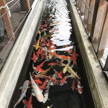 店先に高級そうな錦鯉が泳いでいます。