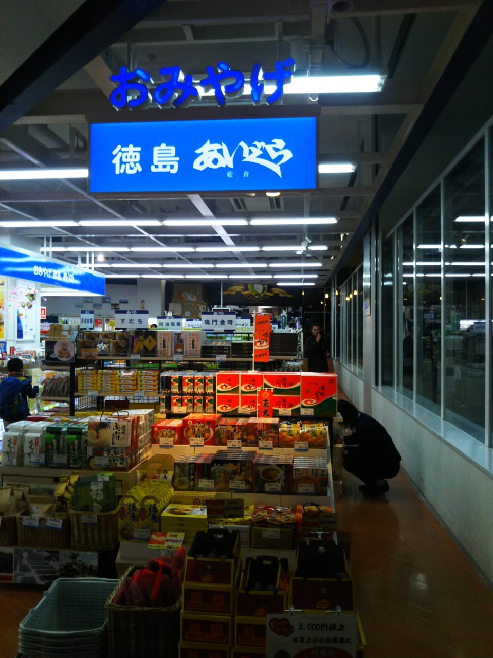徳島阿波おどり空港のなかにあるお土産店です。搭乗口のまえにあるのでフライトまでの時間を楽しく過ごせました。徳島のお土産、金時いもやすだちうどん、徳島ラーメンなど、また四国みやげの一六タルトもありました。