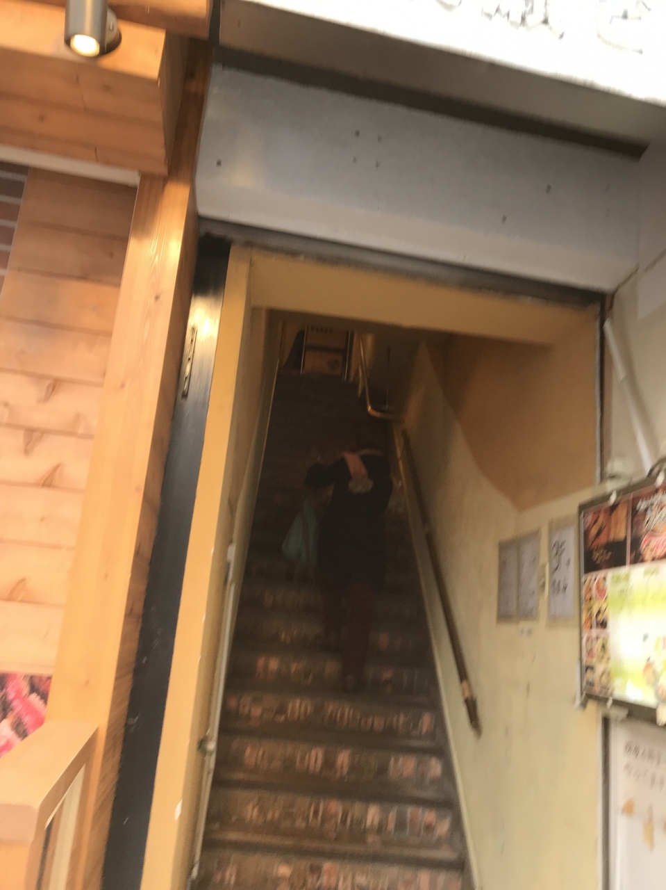 店の雰囲気は、狭い、低い天井、うなぎの寝床のようなそれでいてなんとなくゆっくりできる。しかし、急な階段だったわ。