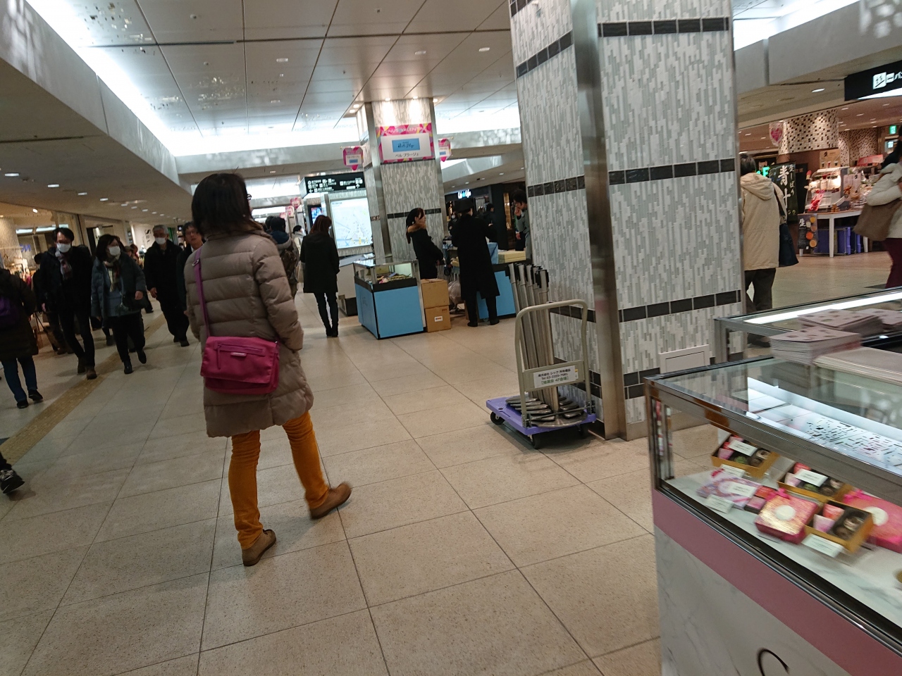 ジョイナス地下街というよりもダイヤモンドと言った方がピンと来るが、今年のバレンタインデーのチョコレートの販売は例年に比べて出店が少なく、買っている人もまばらであった。