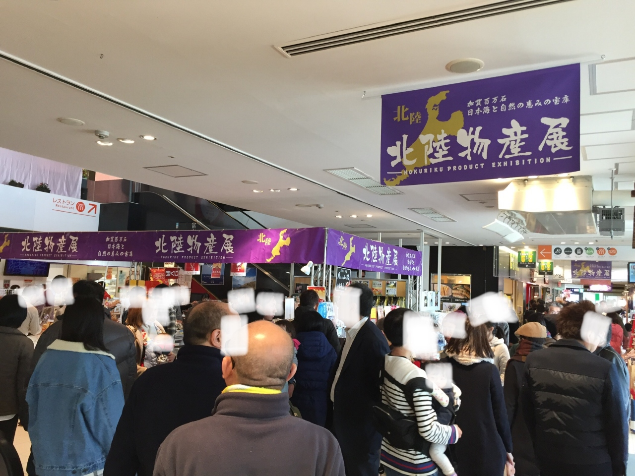 1階は主に食品のショッピングフロア。お客さんが多い分、食べ物の回転率が良く出来立てを購入できます。今回は中央イベントスペースで北陸物産展が催されていました。