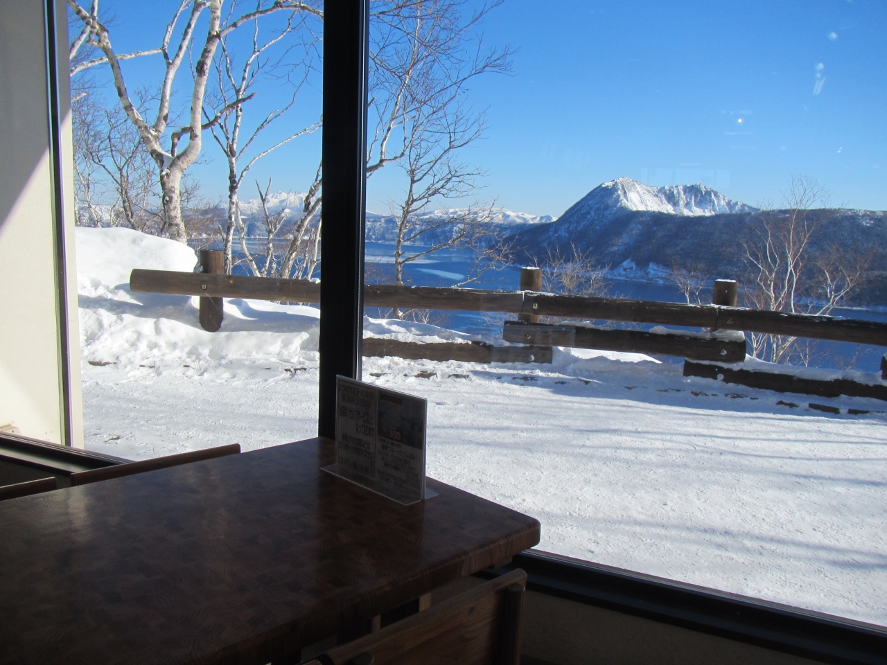 冬でも暖かい室内から摩周湖が見られる