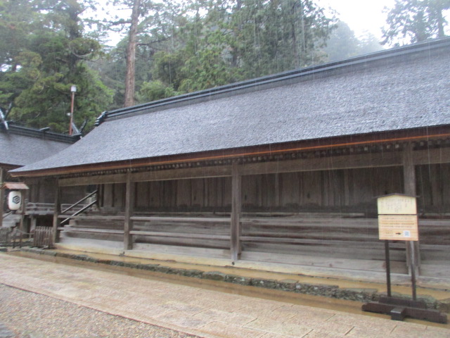 ご本殿の両脇をはさむ感じで建っています。この社は、平素は八百萬神の遥拝所です。旧歴の10月に全国の神様がこちらに集うときは、神々の宿泊所となります。というわけで、横に長くたくさんの神様が泊まれるようになっているんだと思いました。外観は歴史を感じさせるいい雰囲気です。