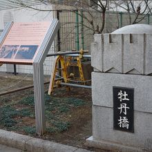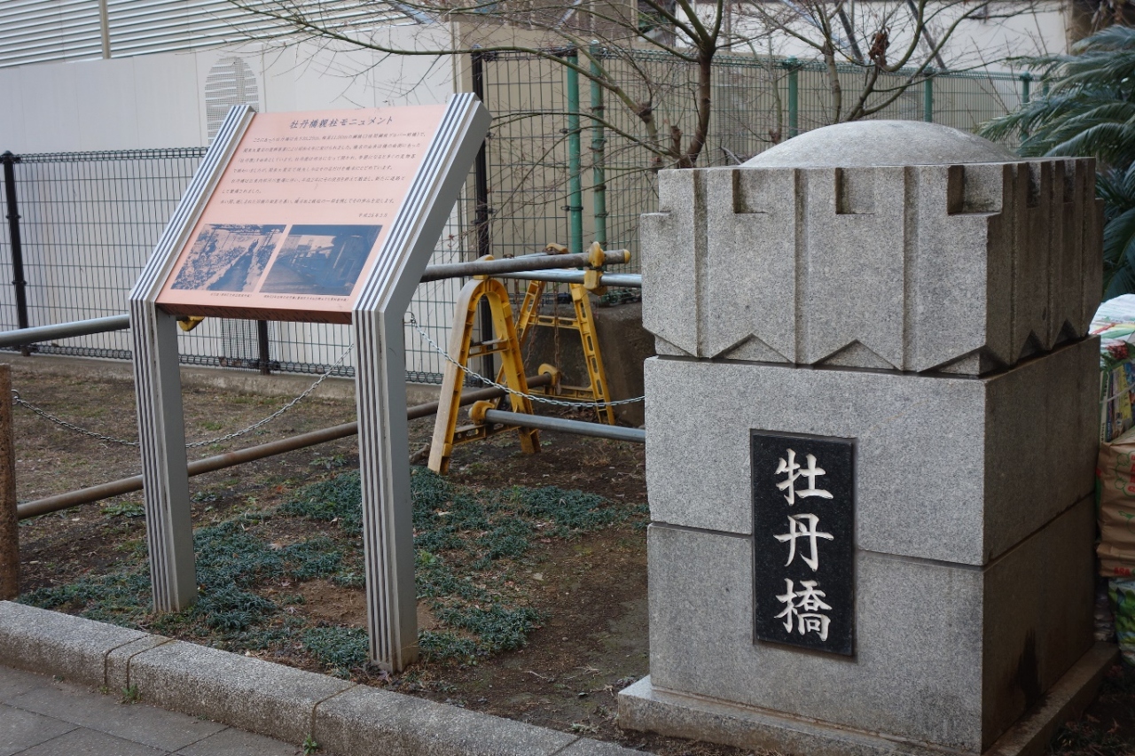 錦糸町エリアを散策中こちらのモニュメントを見学しました。錦糸町駅から牡丹橋通りを南方向へ歩いていくと高速道路の下に親柱のモニュメントと説明板が有りました。モニュメントの上を高速道路が通っていることで少し暗い雰囲気でした。