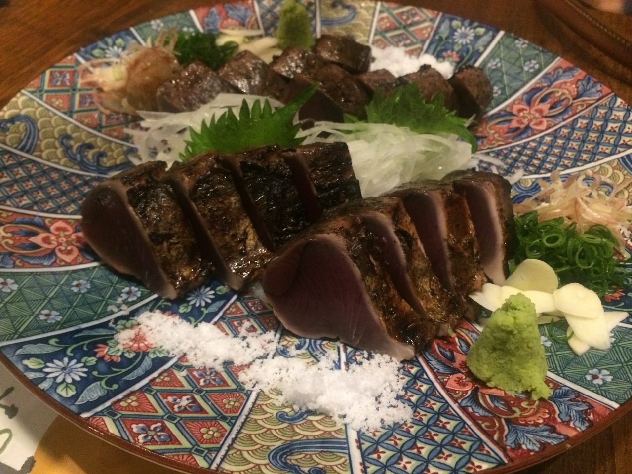 わらやき屋さん。初めて行って感動したのは田町店でしたが、立地的に一番行きやすい品川店が利用頻度高いです。店舗によってちょっとカツオの美味しさにばらつきがあると思います。NO1はやはり田町かな~。というみんなの意見。店舗に直接かけると満席で、予約専用ダイヤルにかけると予約がとれたりします。カツオのわらやきは、分厚くて最高です。あとは芋天が好き。
