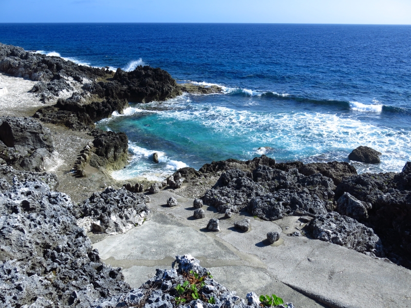 園地の眼下は沖縄海。海岸まで降りることができる数少ないスポットです。