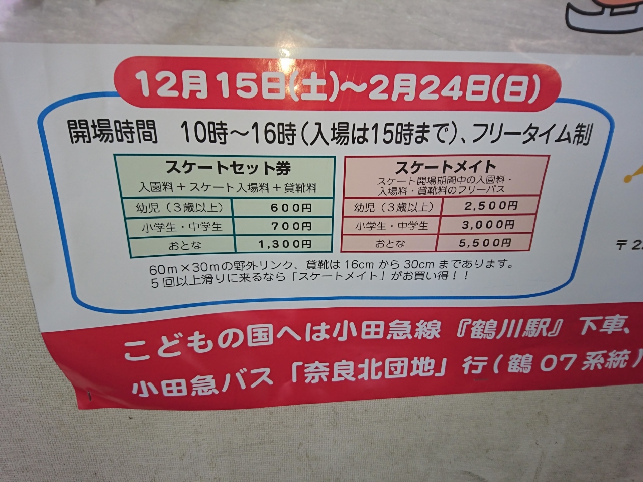 過激な乗り物アトラクションなどありませんが、小さなお子様を連れて1日遊ぶのに最適です。寒くなると、スケートリンクがオープンし、この冬は12月15日~2月24日でした。開場期間中、何回でもスケートができるフリーパス券がお得です。子供用に転びにくい2枚刃靴もレンタルしてくれるので、初めて体験でも楽しめると思います。